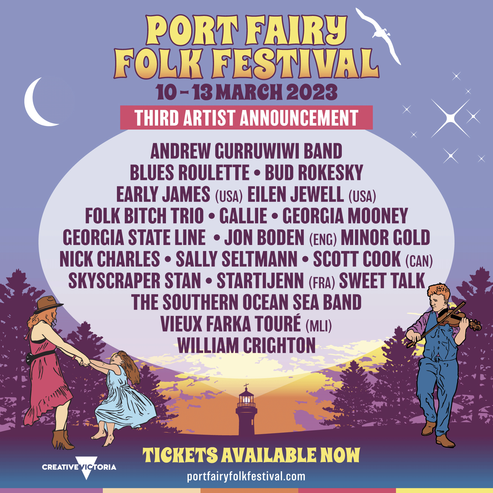Port Fairy is known internationally for it’s Folk Festival held each year over the March long weekend. At this time the population swells from 2,500 to 40,000.